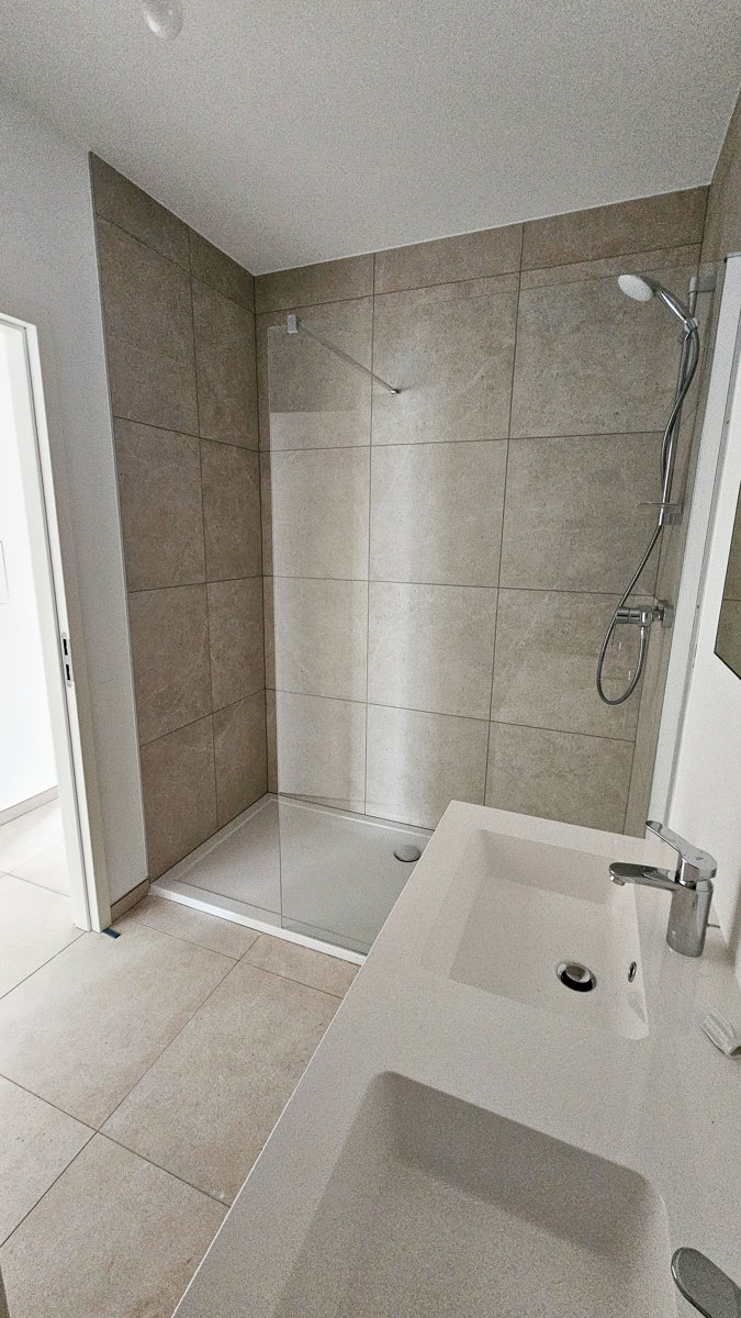 • Carrelage pour toutes les pièces de vie et d’eau ainsi que pour les chambres • Installation sanitaire complète