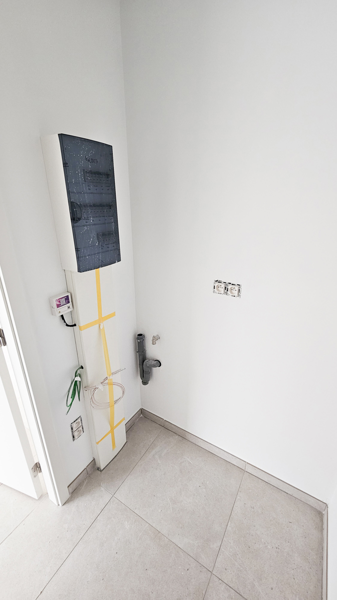 • Carrelage pour toutes les pièces de vie et d’eau ainsi que pour les chambres • Installation sanitaire complète