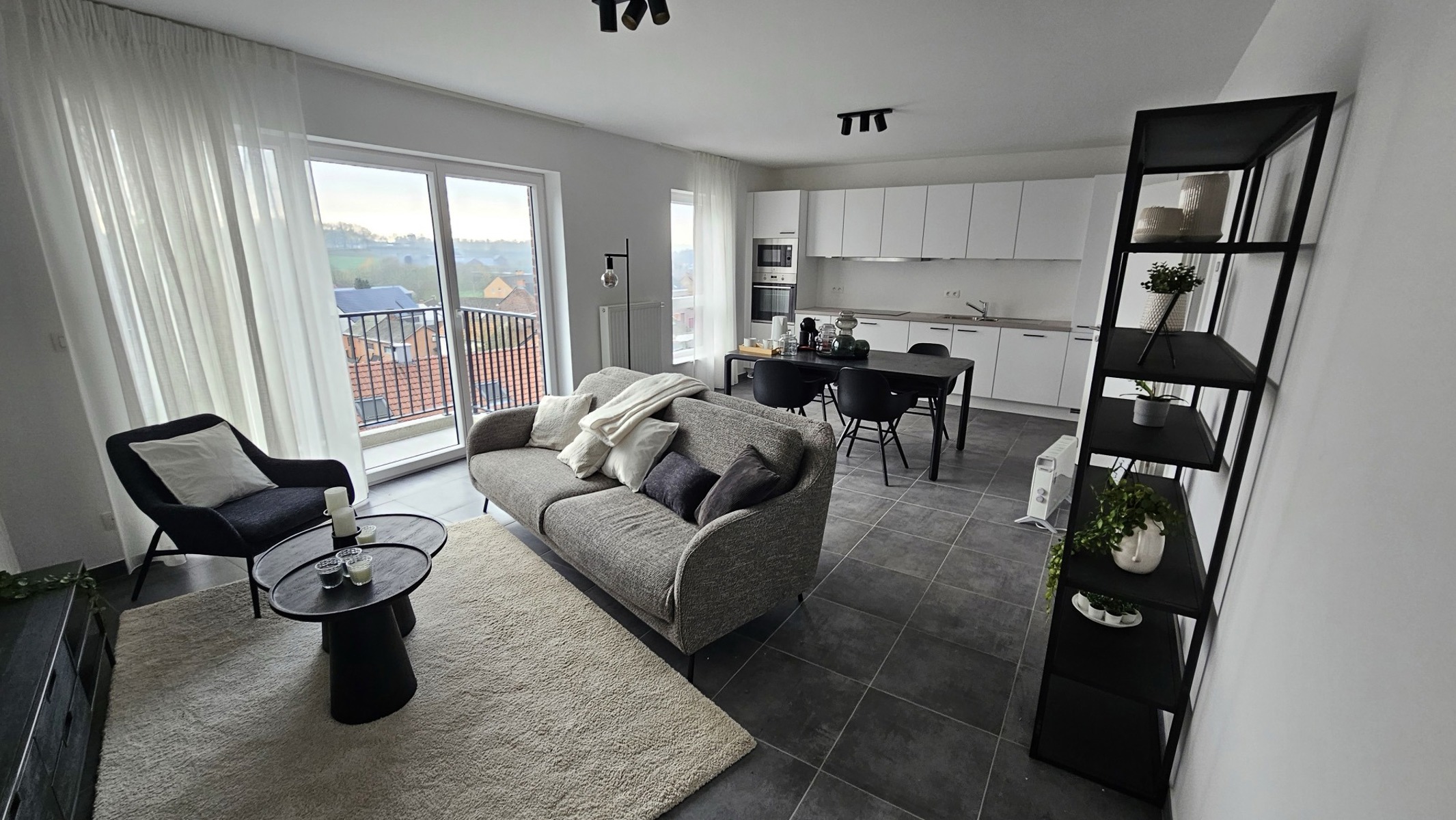 Appartement 0.06Cet appartement se trouve dans un projet composé de 14 appartements au centre de la ville de Thieu. Il se situe à 3km de la ville de Roeulx, à 8km de La Louvière et à 14 km de la ville de Mons. Dans un rayon de 1km autour de la résidence, vous trouverez toutes les facilités comme des supérettes, des cafés, des restaurants, etc. Cet appartement a une superficie de 88.372m². Il se compose d’une pièce de vie avec cuisine ouverte qui s’ouvre sur un balcon. Ce bien se compose de 2 chambres, d’un local technique, d’une salle de douche et d’un wc indépendant. L’appartement dispose d’une cave*Ce prix comprend la mise en oeuvre d’une couche de primaire * vente sous régime TVA / cave incluse dans le prix / parking obligatoire non-inclus.