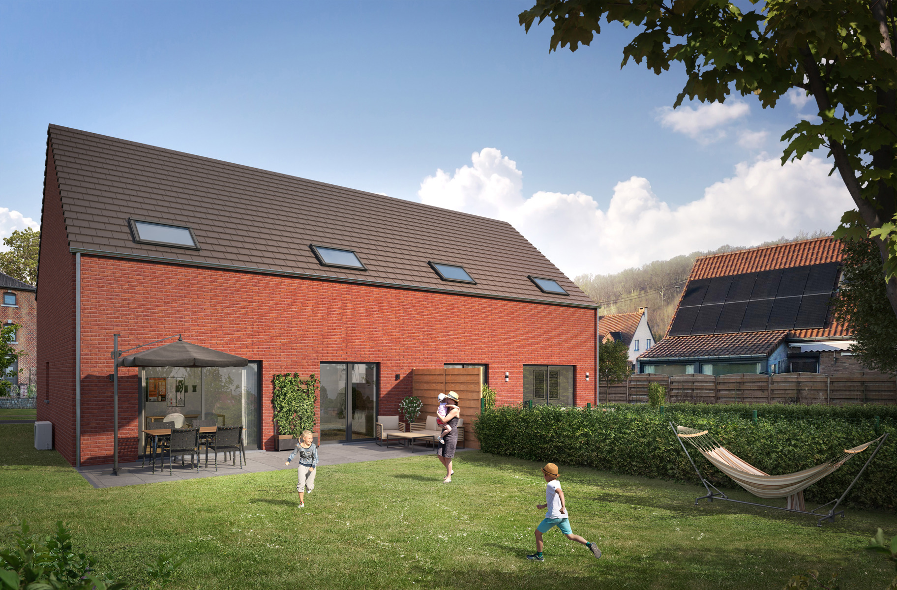 Sotraba présente son nouveau projet à Petit-Enghien : 2 maisons écologiques et énergétiquement avancées Le projet met en avant des standards de qualité élevés, tels que l’isolation acoustique et thermique, la classe énergétique A, des matériaux de pointe, des pompes à chaleur et des panneaux solaires. Chaque maison est conçue avec soin et comprend un garage, ainsi que trois chambres, dont une suite parentale, offrant amplement d’espace pour les résidents.• Proche de grands axes routiers : N7 (Hal – Tournai), E429 (Hal – Tournai)